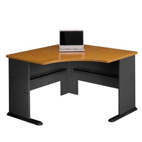 Cheap price deals Natural Cherry and Slate 48 Corner Desk Bush Series A Natural Cherry 48'' corner desk is constructed of top quality engineered wood with a durable Natural Cherry and Slate laminate finish.Corner desk features a desktop grommet for wire management, protective PVC edge banding, and adjustable leveling glides for stability on uneven flooring.Ships ready to assemble.